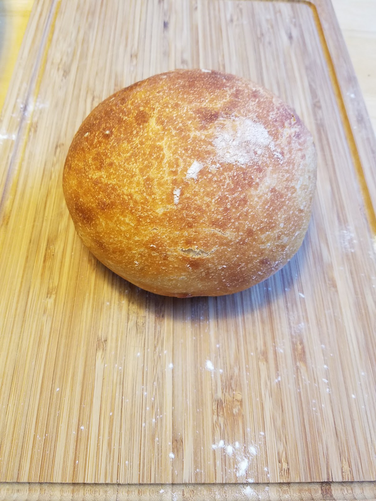 私の家族は固めのパンが好きで、大抵パンを買う場合はパリッと焼きあがったバゲットを買ってくることがおおい。こちらに来てから手に入れたパンの本ではパン・ド・カンパーニュ(田舎風パン)の作り方が出ていて、それを基本に毎回焼いていた。焼き方は、オーブンを250度以上に充分予熱して30分以上焼く。しかし、今回あえて200度位に約おんどを変えて焼いてみるとこんなパンに出来合上がった。いつもの焼き上がりはもっと焦げ目がついて、パンの下層が厚く固く焼きあがるのだが、その硬さが今回はすこし和らいだ。温度をすこし下げるとこんな風に簡単に硬さを調節できることがわかったので、いろいろこれから試してみたいと思う。
